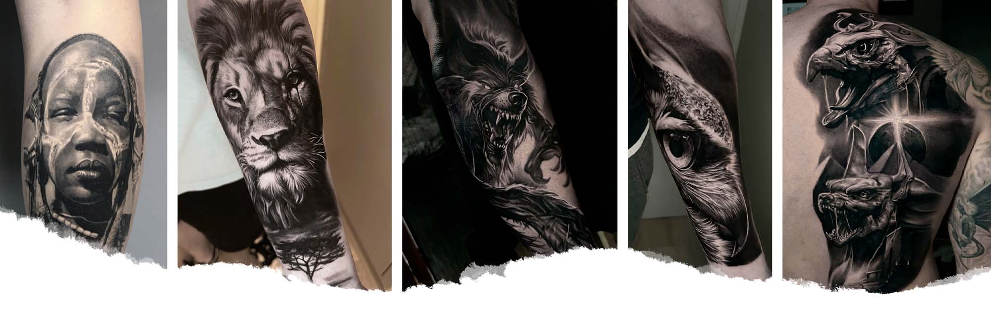 tätowiere ich am liebsten Farbrealismus mit abstrakten Elementen . Meine Freizeit verbringe ich oft und gerne beim Kickboxen
